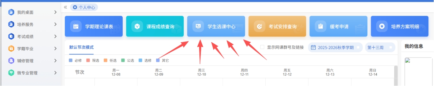 也可以点击导航栏“学生选课中心”跳转进选课