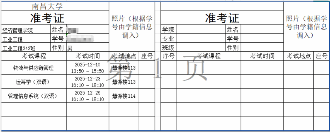 4.点击“下载”功能,支持下载打印【准考证】信息如下图所示: