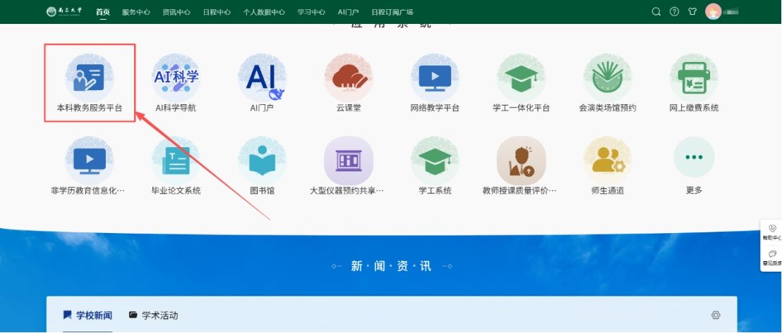 1.登录“我的南大”融合门户(https://my.ncu.edu.cn)。