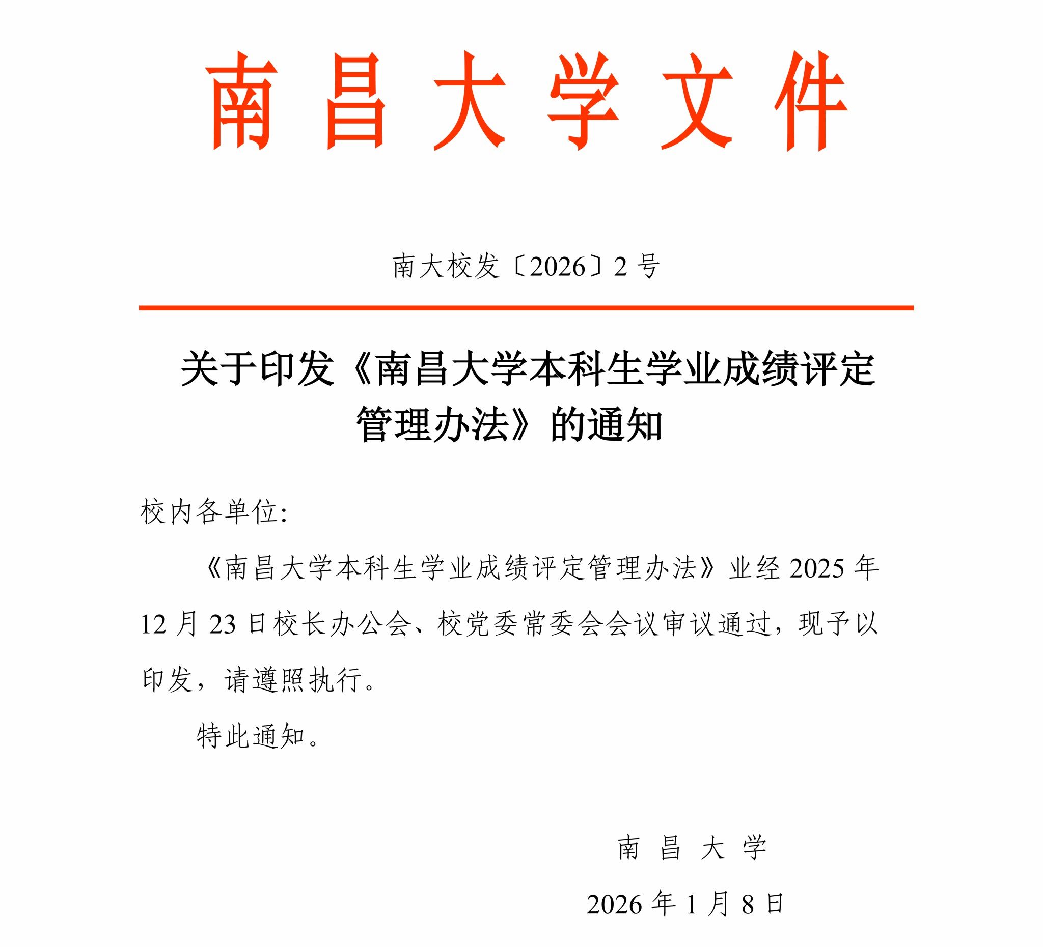 关于印发《南昌大学本科生学业成绩评定管理办法》的通知
