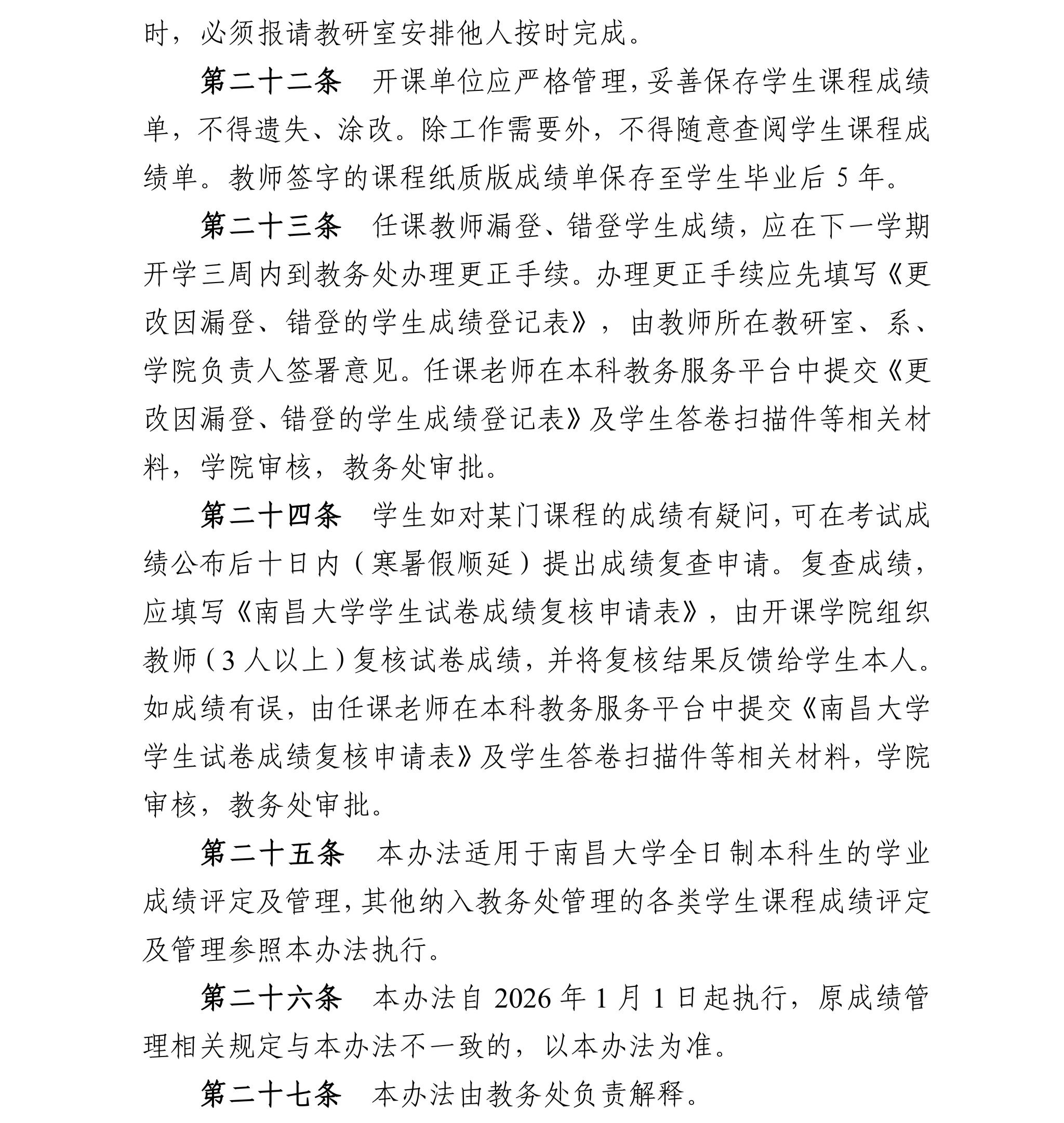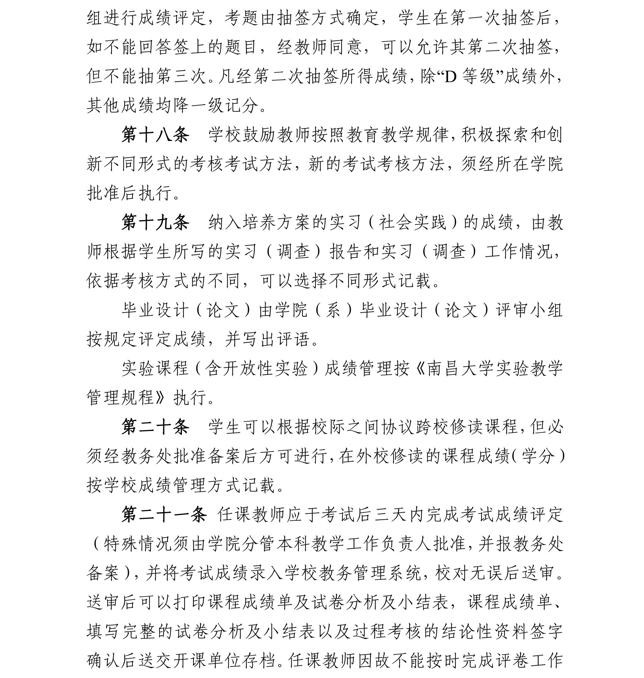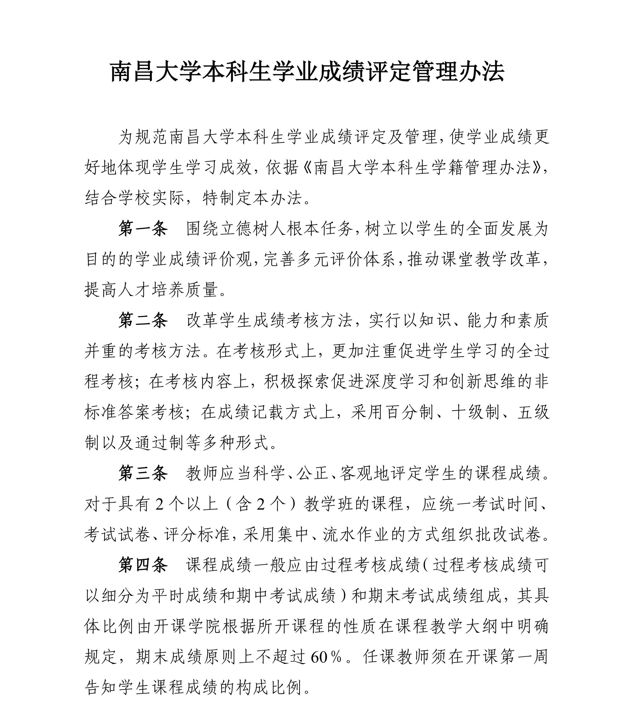 摘要: 关于印发《南昌大学本科生学业成绩评定管理办法》的通知